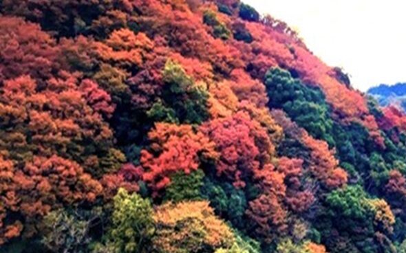(訳)嵐が吹いて散らした奈良の三室山のもみじ葉が、龍田川の水面を覆いつくしてまるで錦織のように見事な風景だ。